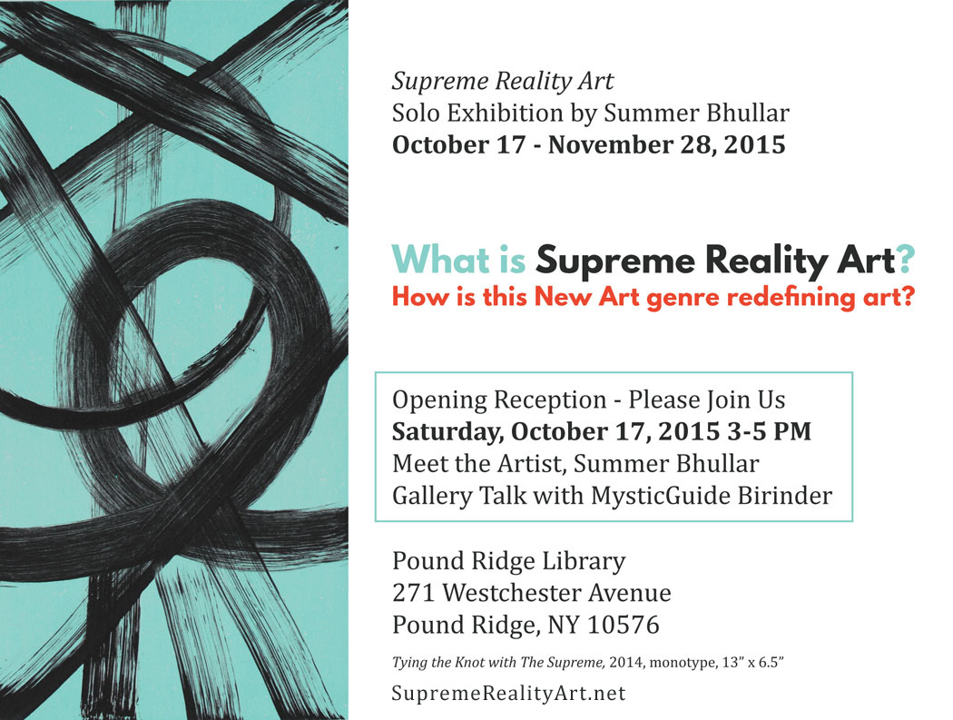 Exhibitions SRA Home Supreme Reality Art Review of the Canons of Art The 7 Themes My Art Process Artwork: Inner Reality Artwork: Outer Reality: Photographs Testimonials Exhibitions Bio & Resume Articles & Press Releases Books, Essays, Interviews Video & Audio Clips To Purchase Artwork Contact Test Page 2 Past Exhibitions Supreme Reality Art - Solo Exhibition - Pound Ridge, NY (click on image for slideshow of additional images) Conquering Fear with Faith Coohaus Art (click on image for slideshow of additional images) Coohaus Exhibition Coohaus Art – Birinder & Summer with Curator Coohaus Art – Summer’s Paintings Coohaus Gallery Coohaus Art – Birinder & Summer with Curator Coohaus Art – Coohaus Exhibition See | Me Gallery - Story of the Creative (click on image for slideshow of additional images) Story of the Creative Story of the Creative 2013 – Summer Bhullar Story of the Creative – Summer’s Painting Creative Rising Building projection 2013 Story of the Creative – Creatives Rising 2013 – Summer Bhullar Story of the Creative 2013 Other shows and exhibits (click on image for slideshow of additional images) Times Square Solo of Summer’s Painting-Feelings Times Square Display – Feelings- July 24, 2014 Greenpoint Gallery 2013 Anatomy Exhibit 2012 Ocular Diversity Exhibition Ocular Diversity group show 2014 Printmaking group exhibit 2012 Year End Exhibition 2012 Summer Bhullar with MysticGuide Birinder See Bio and Resume page for additional show information.